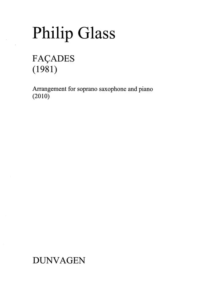 Facades fu scritta nel 1981, originariamente per accompagnare una scena del film "Koyaanishqatsi", poi tagliata dal film. Il titolo si riferisce alle facciate degli edifici di Wall Street, a New York.